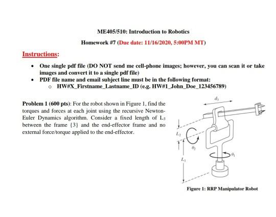 Me405 510 Introduction To Robotics Homework 7 Due Chegg Com